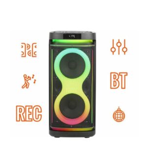 KARAOKE doživetje – V kompletu zvočnika je priložen brezžični mikrofon, ki bo poskrbel za pravo KARAOKE zabavo. Dodatno se na zvočniku se nahajajo tudi vhodi 2x MIC-in za priklop mikrofona, vhod USB, vhod microSD ter vhod za priklop kitare.