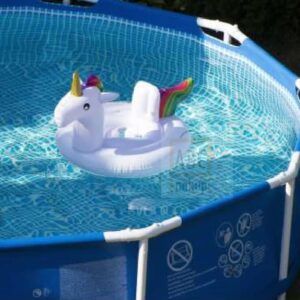 Napihljiva blazina velikosti Ø 62 cm v obliki samoroga pisanih barv bo poskrbela za zabavo najmlajših otrok. Otroka posadite v obroč in poskrbite da gre vsaka nogica v svojo odprtino, ki je namenjena da lahko otroci čofotajo z nogicami.