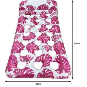Udobna blazina 174 x 90 cm v roza in beli barvi bo kot nalašč za sprostitev v bazenu, ob jezeru ali drugem vodnem rezervoarju. Zračna blazina je primerna rešitev za ljudi, ki cenijo udobje in udobje med sproščanjem na vodi.