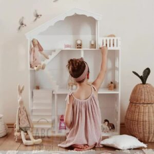 Knjižni regal v obliki hiške, velikosti 116 cm x 82,5 cm x 30 cm bo otroški sobi podal pravi čar in polepšal bralni kotiček.Otrok regal lahko uporablja kot police za knjige ali igrače, lahko pa kot hiško.