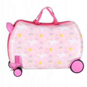Potovalni kovček za otroke – lahek, trpežen in edinstven Ta otroški potovalni kovček je lahek, a trpežen Idealno za družinska potovanja. To je popoln kovček za dekleta – dekleta bodo oboževale pravljične motive. Kolesa se vrtijo za 360 stopinj za gladko manevriranje kovčka in polnega nadzora med izvajanjem s strani starša ali otroka. Kovček ima dodatno funkcijo – lahko se uporablja kot sedež in celo kot voziček za otroke!
