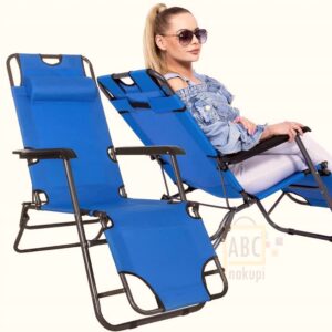 Trpežen počivalnik/stol modre barve je narejen iz trpežne konstrukcije in tekstila bo prava izbira za nadvse največjo sprostitev na vašem vrtu, vikendu in plaži. Za dodatno udobje poskrbi podloženo vzglavje. Nosilnost do 120 kg.