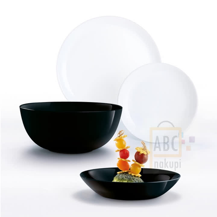 Predstavljamo vam 19 delni jedilni set Luminarc! Vrhunski set posode odporne na praske in udarce. Možnost pranja v pomivalnem stroju. Poseben način izdelave zagotavlja dolgotrajno kakovost in lesk z obeh strani. Set vsebuje: 6 velikih plitkih krožnikov (25 cm), 6 globokih krožnikov (20 cm), 6 desertnih krožnikov (19 cm) in skleda črne barve (21 cm). Naj vam krožniki poživijo vašo kuhinjo in ob serviranju dajo jedem poseben čar.