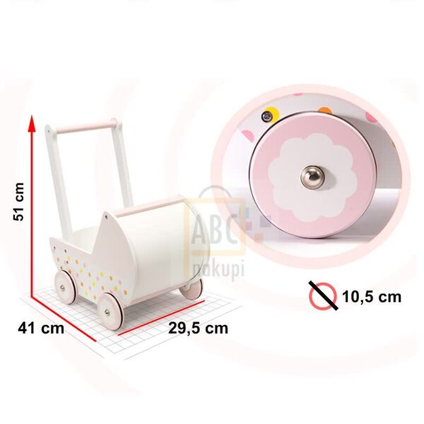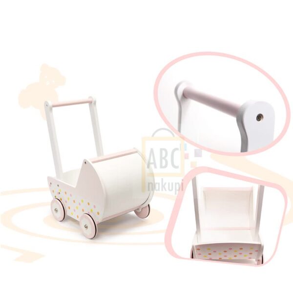 Zelo kakovostno leseno vozilo- sprehajalec Dolls nudi našim malčkom dobro oporo pri prvih korakih. Leseno vozilo je tudi varno, če otrok stopi nanj in se ne bo prevrnilo. Sprehajalec bo pomagal otroku ohranjati ravnotežje med učenjem hoje. Podpira razvoj ročnih spretnosti in razvija motorične sposobnosti celotnega telesa. Sprehajalec bo malčka spodbudil, da bo fizično aktiven. Med drugim sprehajalec nudi otroku, da v njem prevaža vse svoje najljubše igrače in ko se utrudi od vožnje lahko naredi postanek in se igra.