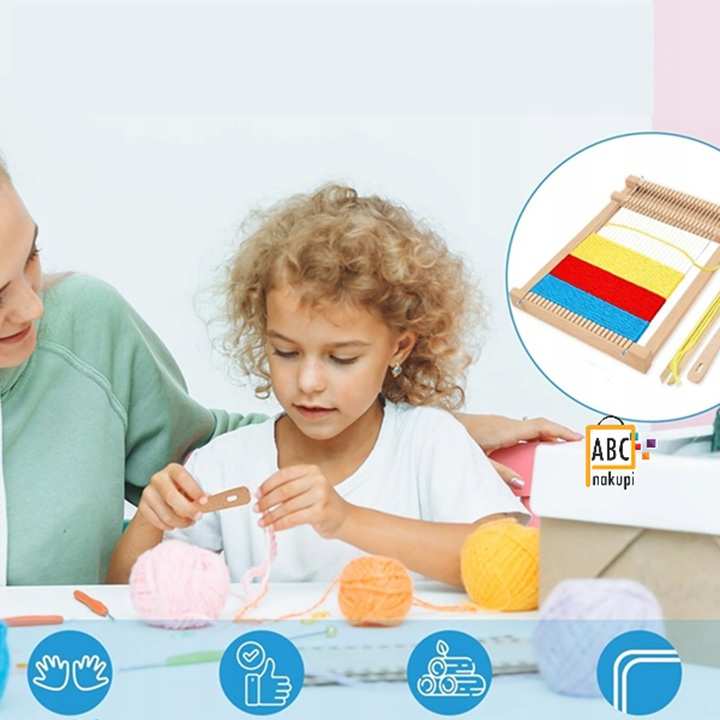 Odlične lesena otroške statve, kot nalašč za tkalca začetnika. Vključuje vse komplete, ki jih potrebujete za ustvarjanje prvega projekta. Statve so izdelan iz kakovostnega lesa, je trpežen, vzdržljiv, ima gladko površino, brez brčev, ni skrbi za praskanje rok in ga lahko uporabljate brez skrbi. Set vključuje statve, leseno kvačkalno kvačko, leseno iglo, leseni tkalni glavnik, dve kovinski naperi in 16 klobčkov preje (naključne barve). Ti dodatki olajšajo začetek tkanja. Otroci lahko oblikujejo unikaten design svoje prve ročno izdelane krpice.