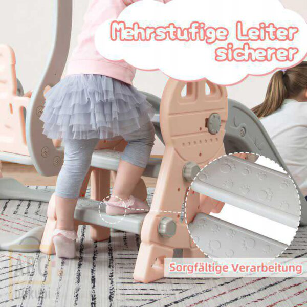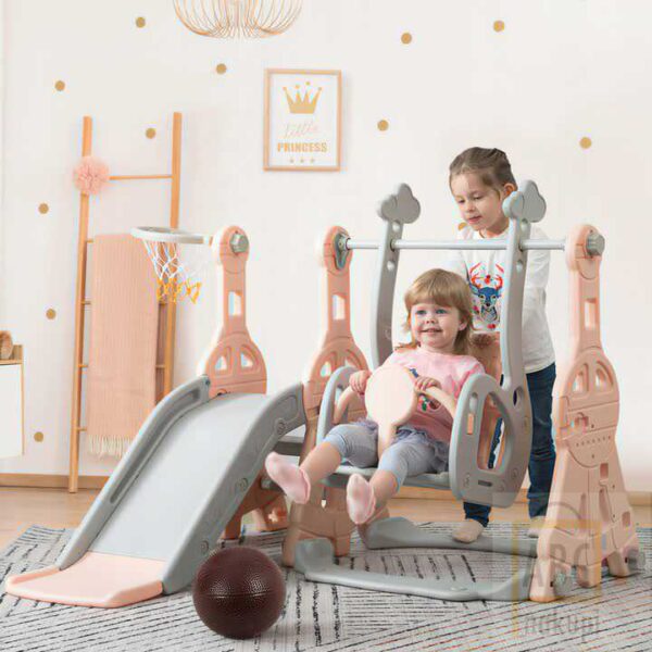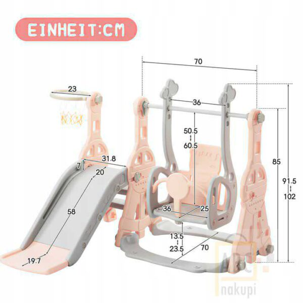 Iščete nov tobogan in zraven še dobite košarkarski obroč, gugalnico z varnostnim zapenjanjem in palico za dviganje svojega telesa. V naši spletni trgovini vam ponujamo čudovito igračo za vaše otroke, ki naenkrat lahko uživajo na igrišču in pri tem se zabavajo z raznimi aktivnostmi. Zabava za več otrok naenkrat. To večnamensko otroško igrišče ne vsebuje kovinskih delov, vse dele pa je mogoče povezati s plastičnimi maticami. Ta izdelek se lahko uporablja tako v zaprtih prostorih kot na prostem zaradi površinske hidroizolacije. Dnevno vzdrževanje – igralo lahko obrišete samo z mokro krpo.