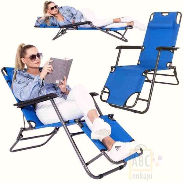 Trpežen počivalnik/stol modre barve je narejen iz trpežne konstrukcije in tekstila bo prava izbira za nadvse največjo sprostitev na vašem vrtuvikendu in plaži. Za dodatno udobje poskrbi podloženo vzglavjeNosilnost do 120 kg.