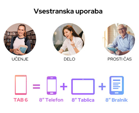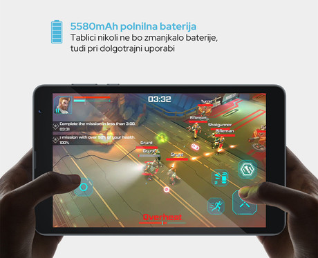 Tablični računalnik vam bo zagotovil izjemno izkušnjo in vas s svojo 3v1 funkcionalnostjo popeljal v svet brez meja. Zahvaljujoč Dual SIM reži in 4G LTE podporo za omrežja ga lahko uporabljate kot pametni telefon, več kot odlično se izkaže tudi njegov 8“ IPS HD+ zaslon, kar pomeni, da je izjemno priročen tudi kot tablični računalnik.