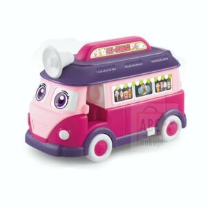 Pisan avtobus 2/1 s svetlobnimi in zvočnimi efekti, ki 2 načina transformacije 2/1: iz vozila se lahko spremeni v trgovino/tovornjak s hranos pisanim sladoledominrazličnimi vrstami lizik. Odlično darilo!