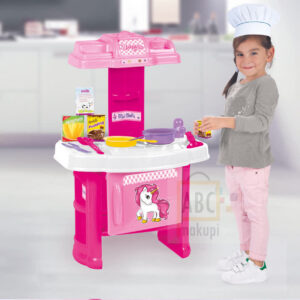 Sodobna, barvita kuhinja z lučkami in zvokom bo prava zabava za male kuharje. Za njihovo ustvarjanje bodo poskrbeli številni pripomočki, saj set vsebuje 41 kosov.