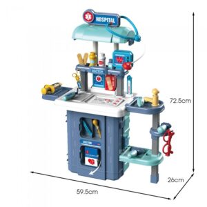 Zdravniški set, kjer bodo mali zdravniki iz kovčka sestavili svojo malo ordinacijo. S tem setom bodo otroci spoznavali delo zdravnika in svojemu dojenčku izmerili vročino, mu poslušali srček in mu predpisali zdravila. Otroku bo v užitek, ko bo imel svojo lastno ordinacijo.
